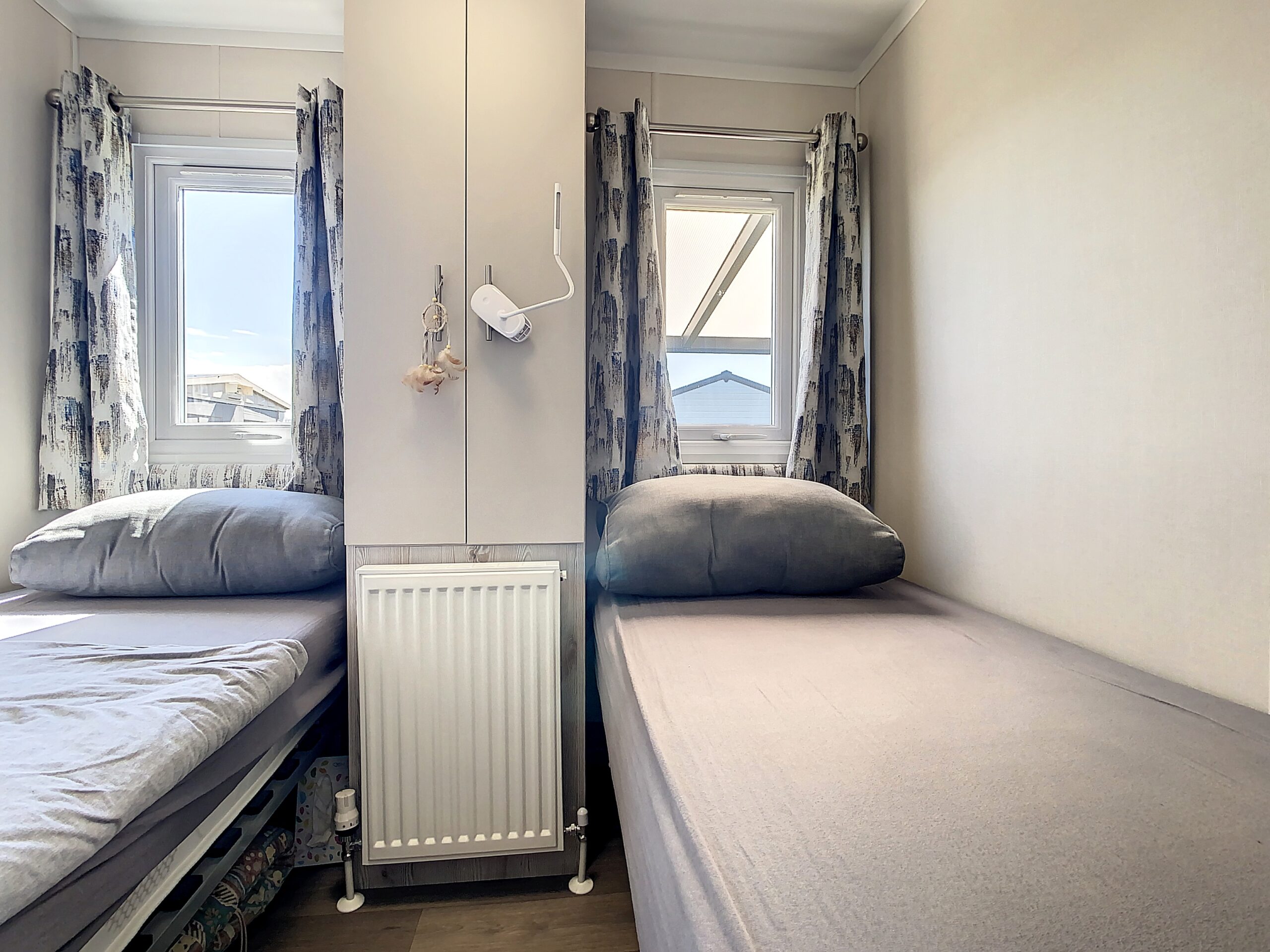 Met twee comfortabele slaapkamers biedt deze stacaravan voldoende ruimte voor het hele gezin. Of je nu geniet van een goede nachtrust in het grote tweepersoonsbed of de kinderen zich vermaken in hun eigen knusse kamer, iedereen zal zich hier thuis voelen.